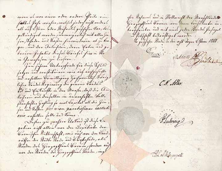| Vorheriges Los | Zurück | Nächstes Los | | Losnr.: | 1205 (Deutschland bis 1945 (Nicht Reichsbank)) | | Titel: | Stadt Bremen | | Auflistung: | 4 % Schuldv. 1.200 Thaler in Pistolen zu je 5 Thalern von 1800 (R 12). | | Ausruf: | 1.500,00 EUR | Ausgabe- datum: | 01.01.1800 | Ausgabe- ort: | Bremen | | Abbildung: |  | | Stücknr.: | 564 | | Info: | Bremen, 782 erstmal genannt, wurde unter Karl dem Großen von Bischof Willehad 787 zum Bistum erhoben. Die Zerstörung des 831 gegründeten Erzbistums Hamburg durch die Normannen 845 gab den Anlass, den erzbischöflichen Sitz 847 von dort nach Bremen zu verlegen und beide Diöcesen zu vereinigen. Damit übernahm Bremen die Aufgabe der Missionierung des skandinavischen Nordens, der sich besonders die Erzbischöfe Ansgar, Rimbert, Unni und Unwan mit Erfolg widmeten. Die glänzendste Erscheinung in der Reihe der Erzbischöfe war Adalbert (1043-1072), der den kirchlichen Einflussbereich Bremens bis Island, Grönland und Finnland ausdehnte, ohne das geplante Patriarchat des Nordens zu erreichen. 965 erhielt Bremen Marktrechte. Die nordischen Sufraganbistümer verlor Bremen an das 1104 gegründete Erzbistum Lund. Das weltliche Territorium der Erzbischöfe beschränkte sich auf das Gebiet zwischen Weser- und Elbmündung (Grafschaft Stade). Gegen den Widerstand der beiden letzten katholischen Erzbischöfe Christoph und Georg von Braunschweig setzte sich die Reformation durch. 1186 wurde Bremen als eigenständige Stadtgemeinde von Kaiser Friedrich I anerkannt und erkämpfte unter dem zuerst 1225 erwähnten Rat die Unabhängigkeit vom erzbischöflichen Stadtherrn. Die 1646 errungene Reichsfreiheit konnte nur unter großen Opfern gegen Schweden und später gegen Hannover verteidigt und erst 1741 erneut gewonnen werden, nachdem das Erzstift Bremen im Westfälischen Frieden 1648 als weltliches Herzogtum den Schweden zugesprochen wurde und 1712 an Dänemark sowie 1720 an Hannover überging. Seit 1806 ist Bremen Freie Hansestadt. | | Besonder-heiten: | Als Schuldner werden neben der Hansestadt Bremen auch der König von Großbritannien, Hannover und Lüneburg genannt. Die Schuldv. wurde 1824 notariell abgetreten und erst in den 30er Jahren zurückgezahlt. Achtseitiges, handgeschriebenes Dokument mit Fadenbindung, fünf papiergedeckte Siegel, die u.a. die Stadtwappen von Hannover und Bremen zeigen, mit Steuerstempeln, vier roten Lacksiegeln und Originalunterschriften. | | Verfügbar: | Eine der ältesten deutsche Stadtanleihen überhaupt, seit 1985 in einer festen Sammlung gewesen. (R 12) | | Erhaltung: | EF. | | Zuschlag: | 1.500,00 EUR |