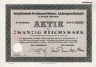 | Los | Beschreibung | Datum | Ausruf | Zuschlag | | 1081 | Leipziger Luftschiffhafen- und Flugplatz-AG | 25.03.1913 | 200,00 | 200,00 | | 1082 | Leprince & Siveke AG | 01.08.1922 | 100,00 | 110,00 | | 1083 | Lewinsky, Retzlaff & Co. Bank-KGaA | 01.04.1922 | 150,00 | offen | | 1084 | Lichterfelder Bau-Verein | 01.03.1872 | 400,00 | offen | | 1085 | Lloyd AG | 01.05.1923 | 220,00 | 240,00 | | 1086 | Localbahn-AG | 12.03.1891 | 400,00 | offen | | 1087 | Loebau-Zittauer Eisenbahn-Gesellschaft | 01.07.1847 | 500,00 | 500,00 | | 1088 | Loebau-Zittauer Eisenbahn-Gesellschaft | 31.12.1847 | 800,00 | 800,00 | | 1089 | Löwenbräu München | 01.03.1942 | 150,00 | 150,00 n | | 1090 | Lokomotivfabrik Krauss & Comp. AG | 22.05.1920 | 1.000,00 | offen | | 1091 | Lugauer Bergbau-Gesellschaft Rhenania | 10.08.1872 | 400,00 | 420,00 | | 1092 | Lugauer Bergbau-Gesellschaft Rhenania | 21.07.1873 | 500,00 | 500,00 n | | 1093 | M. Niedermayr Papierwarenfabrik AG | 18.01.1923 | 500,00 | 580,00 | | 1094 | Märkisch-Schlesische Maschinenbau- und Hütten-AG vormals F. A. Egells | 15.09.1871 | 800,00 | offen | | 1095 | Magdeburger Hagelversicherungs-Gesellschaft | 01.05.1854 | 3.000,00 | 4.200,00 | | 1096 | Magdeburger Lebensversicherungs-Gesellschaft | 10.03.1856 | 150,00 | offen | | 1097 | Mainzer Ruder-Verein | 01.07.1896 | 375,00 | 375,00 | | 1098 | Maklerbank | 26.09.1881 | 800,00 | offen | | 1099 | Malzfabrik Mellrichstadt AG | 02.03.1938 | 250,00 | offen | | 1100 | Marienborn-Beendorfer Kleinbahn-Gesellschaft | 21.10.1922 | 80,00 | offen | | 1101 | Markgraf AG für Braunkohlenbergbau | 01.10.1923 | 60,00 | offen | | 1102 | Maschinenbau-AG | 01.03.1923 | 100,00 | offen | | 1103 | Maschinenfabrik Augsburg-Nürnberg AG | 01.12.1920 | 500,00 | 550,00 | | 1104 | Maschinenfabrik F. Weigel Nachf. AG | 02.01.1909 | 300,00 | offen | | 1105 | Max Daehne AG | 15.10.1925 | 50,00 | offen | | 1106 | Mechanische Baumwoll-Spinn- & Weberei zu Blaichach | 01.01.1857 | 1.500,00 | offen | | 1107 | Mechanische Weberei zu Linden | 01.04.1926 | 100,00 | 100,00 | | 1108 | Mechanische Weberei zu Linden | 01.04.1926 | 100,00 | 100,00 | | 1109 | Mecklenburgische Gewerkschaft Friedrich Franz | 08.12.1896 | 440,00 | offen | | 1110 | Mecklenburgische Maschinen- und Wagenbau AG | 01.08.1882 | 500,00 | offen | | 1111 | Memeler Spritwerke AG | 01.04.1932 | 80,00 | offen | | 1112 | Metallbank und Metallurgische Gesellschaft AG | 19.02.1918 | 500,00 | 500,00 | | 1113 | Metallbank und Metallurgische Gesellschaft AG | 01.04.1922 | 450,00 | offen | | 1114 | Mitteldeutsche Landlichtspiele AG | 14.03.1923 | 150,00 | offen | | 1115 | Moritz Blank Nachf. AG, Ofen- und Gußwaren-Großhandlung | 19.02.1925 | 100,00 | 100,00 | | 1116 | Moritz Ribbert AG | 01.05.1938 | 100,00 | offen | | 1117 | Mühle Glöwen AG | 01.06.1923 | 200,00 | offen | | 1118 | Nassauischer Kunstverein | 16.07.1884 | 125,00 | offen | | 1119 | Nationale Automobil-Gesellschaft AG | 01.07.1922 | 200,00 | 200,00 | | 1120 | Neckar-AG | 01.10.1921 | 80,00 | offen | | 1121 | Neisser Kreisbahn-AG | 01.01.1913 | 100,00 | offen | | 1122 | Neu Guinea Compagnie | 16.02.1914 | 90,00 | 105,00 | | 1123 | Neubeschertglück Sonenlauf und Reicheschatz Fundgrube | 25.05.1846 | 1.000,00 | 1.000,00 n | | 1124 | Neue Berliner Grundstücks-AG (umgewandelt in VZ-Aktie) | 01.07.1909 | 250,00 | offen | | 1125 | Neue Boden-AG | 01.06.1901 | 500,00 | offen | | 1126 | Neuhaus-Bülkauer Schleusen-Verband | 01.06.1852 | 600,00 | 600,00 | | 1127 | NIBRAG Niederlausitzer-Bad Reichenhaller Chemische Werke AG | 01.01.1923 | 100,00 | 100,00 | | 1128 | Niederdeutsche Kalk- und Zementwerke AG | 01.01.1924 | 120,00 | 120,00 | | 1129 | Niederlausitzer Hefefabrik AG | 01.04.1934 | 160,00 | offen | | 1130 | Niederwald-Bahn-Gesellschaft | 01.07.1884 | 1.500,00 | offen | | 1131 | Nitritfabrik AG | 20.03.1923 | 200,00 | offen | | 1132 | Norddeutsche Automobilfabrik AG | 01.10.1923 | 75,00 | 80,00 | | 1133 | Norddeutsche Hochseefischerei AG | 15.01.1922 | 100,00 | offen | | 1134 | Norddeutsche Papier-Fabrik AG | 01.07.1871 | 1.500,00 | 1.500,00 | | 1135 | Norddeutsche Patentmatratzen- & Polstermöbelfabrik AG | 01.07.1923 | 100,00 | offen | | 1136 | Norddeutsche Union-Werke Werft, Maschinen & Waggonbau AG | 28.12.1922 | 350,00 | 380,00 | | 1137 | Norddeutscher Bankverein AG | 22.06.1922 | 200,00 | offen | | 1138 | Norddeutscher Lloyd | 01.08.1936 | 60,00 | offen | | 1139 | Oberhohndorfer Schader-Steinkohlenbau-Verein | 27.06.1860 | 7.000,00 | offen | | 1140 | Oldenburgische Landesbank (Spar- und Leihbank) AG | 01.02.1935 | 150,00 | 150,00 | | 1141 | OMZ Vereinigte Ost- und Mitteldeutsche Zement AG | 12.12.1941 | 60,00 | offen | | 1142 | Ostbayerische Industrie- und Handelsbank AG | 16.08.1923 | 175,00 | offen | | 1143 | Ostdeutsche Eisenbahn-Gesellschaft | 01.10.1899 | 200,00 | offen | | 1144 | Ostdeutsche Tafelglas-AG für Industrie und Baubedarf | 01.08.1923 | 125,00 | 125,00 | | 1145 | Ostdeutsche Textilindustrie AG | 01.06.1931 | 60,00 | offen | | 1146 | Osterwieck-Wasserlebener Eisenbahn AG | 01.11.1926 | 150,00 | offen | | 1147 | Patentpapierfabrik zu Penig | 09.06.1923 | 200,00 | offen | | 1148 | Perleberger Versicherungs-AG | 01.01.1922 | 150,00 | offen | | 1149 | Phänomen-Werke Gustav Hiller AG | 01.06.1929 | 100,00 | offen | | 1150 | PHOENIX AG für Bergbau und Hüttenbetrieb | 29.10.1906 | 500,00 | offen | | 1151 | Plettenberger Straßenbahn-AG | 31.05.1938 | 125,00 | 125,00 | | 1152 | Pommersche-Ritterschaftliche Privat-Bank | 19.09.1856 | 2.000,00 | offen | | 1153 | Pommerscher Industrie-Verein auf Actien | 01.12.1876 | 1.200,00 | 1.200,00 | | 1154 | Porzellanfabrik Ph. Rosenthal & Co. AG | 23.12.1921 | 400,00 | 400,00 n | | 1155 | Posener Landschaft | 01.01.1912 | 150,00 | 160,00 v | | 1156 | Preussisch Bengalische Compagnie (Compagnie Royale de Bengale) | 05.04.1754 | 12.500,00 | 12.500,00 | | 1157 | Preussisch-Rheinische Dampfschiffahrts-Gesellschaft | 01.12.1928 | 250,00 | offen | | 1158 | Preussische B