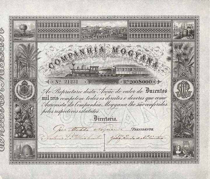 | Vorheriges Los | Zurück | Nächstes Los | | Losnr.: | 333 (Brasilien) | | Titel: | Companhia Mogyana | | Auflistung: | Accao Rs. 200$000 ca. 1872-1875. | | Ausruf: | 750,00 EUR | Ausgabe- datum: | 01.01.1872 | Ausgabe- ort: | Rio de Janeiro | | Abbildung: |  | | Stücknr.: | 21231 | | Info: | Überaus bedeutende Eisenbahngesellschaft, gegründet am 21.3.1872 auf Initiative der brasilianischen “Kaffee-Barone”. Die Bahnlinie wurde in drei Abschnitte geteilt, wobei die Dividende für jeden der Abschnitte einzeln berechnet wurde. Die Gesellschaft war mit umfangreichen Privilegien der brasilianischen Kaiserreiches ausgestattet. In den 1990er Jahren wurde eine Teilstrecke von 24,5 km Länge als Kulturdenkmal und Touristenattraktion wieder in Betrieb gesetzt. | | Besonder-heiten: | Überreichlich illustrierter Titel u.a. Stadtansicht aus der Vogelperspektive und eine herrliche Eisenbahndarstellung. Dieses beeindruckende Wertpapier wurde gedruckt bei Waterlow & Sons. | | Verfügbar: | Rarität. | | Erhaltung: | Originalsignaturen. Unentwertet. EF+. | | Zuschlag: | offen |