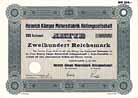 | Lot | Description | Date | Starting price | Sold | | 1401 | Uno-Elektrowerk AG | 05.02.1921 | 50,00 | unsold | | 1402 | Verband Groß-Berlin | 13.08.1919 | 30,00 | unsold | | 1403 | Vereinigte Königs- und Laurahütte AG für Bergbau und Hüttenbetrieb | 01.02.1920 | 40,00 | unsold | | 1404 | Vereinigte Neumärkische Kohlenwerke AG | 12.05.1923 | 35,00 | unsold | | 1405 | Vereinigte Zünder- und Kabelwerke AG | 05.12.1922 | 40,00 | unsold | | 1406 | Vereinigte Zwieseler & Pirnaer Farbenglaswerke AG | 01.01.1923 | 35,00 | unsold | | 1407 | Victor Clicquot Quenardel & Cie. Nachf. AG | 01.01.1922 | 90,00 | unsold | | 1408 | Vogtländische Carbonisiranstalt | 01.01.1921 | 90,00 | 95,00 | | 1409 | Voigt & Haeffner AG | 01.08.1922 | 150,00 | 150,00 | | 1410 | Volksstaat Hessen | 05.04.1923 | 50,00 | 55,00 v | | 1411 | Volksstaat Hessen | 05.04.1923 | 45,00 | unsold | | 1412 | Waggon- und Wagenbau Rathsack & Co. AG | 08.07.1922 | 125,00 | unsold | | 1413 | Walchenseewerk AG - Mittlere Isar AG - Bayernwerk AG | 20.02.1923 | 45,00 | 45,00 | | 1414 | Warenkreditbank AG | 01.01.1923 | 60,00 | 60,00 | | 1415 | Werger Brauerei AG | 01.10.1923 | 40,00 | unsold | | 1416 | Werkbedarf-AG | 01.01.1923 | 150,00 | unsold | | 1417 | Werkbedarf-AG | 01.09.1923 | 130,00 | 130,00 | | 1418 | Wilhelm Kathe AG | 22.12.1922 | 140,00 | unsold | | 1419 | Württembergische Baumwoll-Spinnerei und -Weberei | 01.03.1921 | 60,00 | unsold | | 1420 | Zuckerkreditbank-AG | 01.10.1923 | 40,00 | 40,00 | | 1421 | Zweckverband “Elektrizitätsverband Stade" | 01.01.1923 | 75,00 | unsold | | 1422 | Zwickauer Maschinenfabrik | 01.01.1920 | 100,00 | unsold | | 1423 | Accumulatoren-Fabrik AG | 01.11.1941 | 45,00 | 45,00 | | 1424 | Aelteste Volkstedter Porzellanfabrik AG | 01.03.1933 | 50,00 | 50,00 n | | 1425 | Afrikanische Frucht-Compagnie AG | 06.06.1930 | 75,00 | 75,00 | | 1426 | AG Bad Neuenahr | 01.12.1934 | 90,00 | unsold | | 1427 | AG der Gerresheimer Glashüttenwerke vorm. Ferd. Heye | 01.06.1942 | 90,00 | 110,00 | | 1428 | AG für Bauausführungen | 29.12.1924 | 35,00 | unsold | | 1429 | AG für Glasfabrikation vorm. Gebrüder Hoffmann | 17.07.1930 | 50,00 | unsold | | 1430 | AG Sächsische Werke | 02.02.1925 | 125,00 | 125,00 | | 1431 | AG Sächsische Werke | 20.07.1926 | 100,00 | unsold | | 1432 | Ahrtalbank AG | 01.01.1924 | 150,00 | 150,00 | | 1433 | Ahrtalbank AG | 01.01.1940 | 125,00 | unsold | | 1434 | Aktien-Malzfabrik Karl Hoffmann AG | 01.10.1937 | 125,00 | unsold | | 1435 | Alexanderwerk A. von der Nahmer AG | 01.08.1937 | 75,00 | unsold | | 1436 | Allerthal-Werke AG | 01.01.1933 | 60,00 | 60,00 | | 1437 | Allgemeine Elektricitäts-Gesellschaft | 15.01.1925 | 125,00 | unsold | | 1438 | Allgemeine Elektricitäts-Gesellschaft | 01.07.1939 | 30,00 | 33,00 v | | 1439 | Altmärkische Kleinbahn-AG | 25.02.1929 | 180,00 | 180,00 | | 1440 | Altmärkische Ueberlandzentrale eGmbH | 15.12.1925 | 125,00 | 125,00 | | 1441 | Annaburger Steingutfabrik AG | 01.01.1939 | 75,00 | unsold | | 1442 | Aschaffenburger Zellstoffwerke AG | 01.02.1942 | 45,00 | unsold | | 1443 | Aschinger AG | 01.10.1938 | 40,00 | unsold | | 1444 | Bachmann & Co. AG | 01.05.1941 | 50,00 | unsold | | 1445 | Baumwoll-Spinnerei Zwickau | 01.10.1933 | 35,00 | 35,00 | | 1446 | Bayerische Motoren Werke AG | 01.05.1942 | 30,00 | 33,00 | | 1447 | Berliner Städtische Elektrizitätswerke AG (BEWAG) | 11.03.1929 | 90,00 | unsold | | 1448 | Berlinische Feuer-Versicherungs-Anstalt | 02.05.1930 | 85,00 | 85,00 | | 1449 | Bezirksverband Oberschwäbische Elektrizitätswerke | 15.01.1926 | 125,00 | 125,00 | | 1450 | Biochemische Industrie AG | 30.12.1924 | 50,00 | 50,00 | | 1451 | Böhmisch-Brauhaus GmbH | 25.03.1925 | 45,00 | unsold | | 1452 | Bogenschützen-Gesellschaft Kötzschenbroda e.G. | 20.06.1928 | 160,00 | unsold | | 1453 | Brauerei "Zur Eiche" vorm. Schwensen & Fehrs | 01.11.1943 | 75,00 | unsold | | 1454 | Braunkohle-Benzin AG | 01.05.1940 | 25,00 | unsold | | 1455 | Breslauer Messe- und Ausstellungs-AG | 01.02.1939 | 150,00 | 150,00 | | 1456 | Central-Landschaft für die Preußischen Staaten | 27.03.1926 | 20,00 | unsold | | 1457 | Chemische Fabrik Ambra AG | 09.01.1924 | 100,00 | 185,00 | | 1458 | Communal-Bank für Sachsen | 01.04.1927 | 35,00 | unsold | | 1459 | Continental Gummi-Werke AG | 01.05.1929 | 60,00 | unsold | | 1460 | Continental Gummi-Werke AG | 01.12.1941 | 50,00 | 50,00 | | 1461 | Danzig (Municipality of Danzig) | 01.09.1925 | 150,00 | unsold | | 1462 | Demag AG | 01.04.1937 | 50,00 | 50,00 | | 1463 | Deutsche Continental-Gas-Gesellschaft | 01.01.1927 | 85,00 | unsold | | 1464 | Deutsche Dampfschifffahrts-Gesellschaft "Hansa" | 01.07.1933 | 60,00 | 60,00 | | 1465 | Deutsche Reichsbahn | 01.12.1939 | 35,00 | 35,00 n | | 1466 | Deutsche Rentenbank-Kreditanstalt Landwirtschaftliche Zentralbank | 15.07.1927 | 100,00 | unsold | | 1467 | Deutsches Reich (Young-Anleihe) | 01.06.1930 | 150,00 | 180,00 | | 1468 | Deutsches Reich | 13.09.1940 | 45,00 | 45,00 | | 1469 | Dr. Heinr. Abbes & Co. AG | 01.12.1924 | 70,00 | unsold | | 1470 | Draht- & Kratzenstoffwerke AG | 27.10.1928 | 75,00 | 75,00 | | 1471 | Eisenwerk Kaiserslautern | 01.04.1933 | 125,00 | unsold | | 1472 | Elektricitäts-Lieferungs-Gesellschaft | 01.03.1942 | 60,00 | unsold | | 1473 | Elektricitätswerk Crottorf AG | 01.09.1937 | 50,00 | unsold | | 1474 | Elektrisches Überlandswerk rGmbH | 01.06.1942 | 25,00 | 25,00 | | 1475 | Elektrizitäts-AG vorm. W. Lahmeyer & Co. | 01.03.1930 | 65,00 | 65,00 n | | 1476 | Elektrowerke AG (Reichs-Elektrowerke) | 01.11.1943 | 25,00 | unsold | | 1477 | Elsenthal Holzstoff- und Papierfabrik AG | 01.03.1928 | 125,00 | unsold | | 1478 | Elsenthal Holzstoff- und Papierfabrik AG | 01.04.1929 | 125,00 | 125,00 | | 1479 | Erdölgesellschaft "Annemarie" | 01.06.1939 | 50,00 | unsold | | 1480 | Erdölgesellschaft Oelerse | 22.07.1926 | 45,00 | unsold | | 1481 | Ernst Grumbach & Sohn AG | 01.03.1925 | 80,00 | 80,00 | | 1482 | Ernst Heinkel AG | 01.09.1943 | 10
